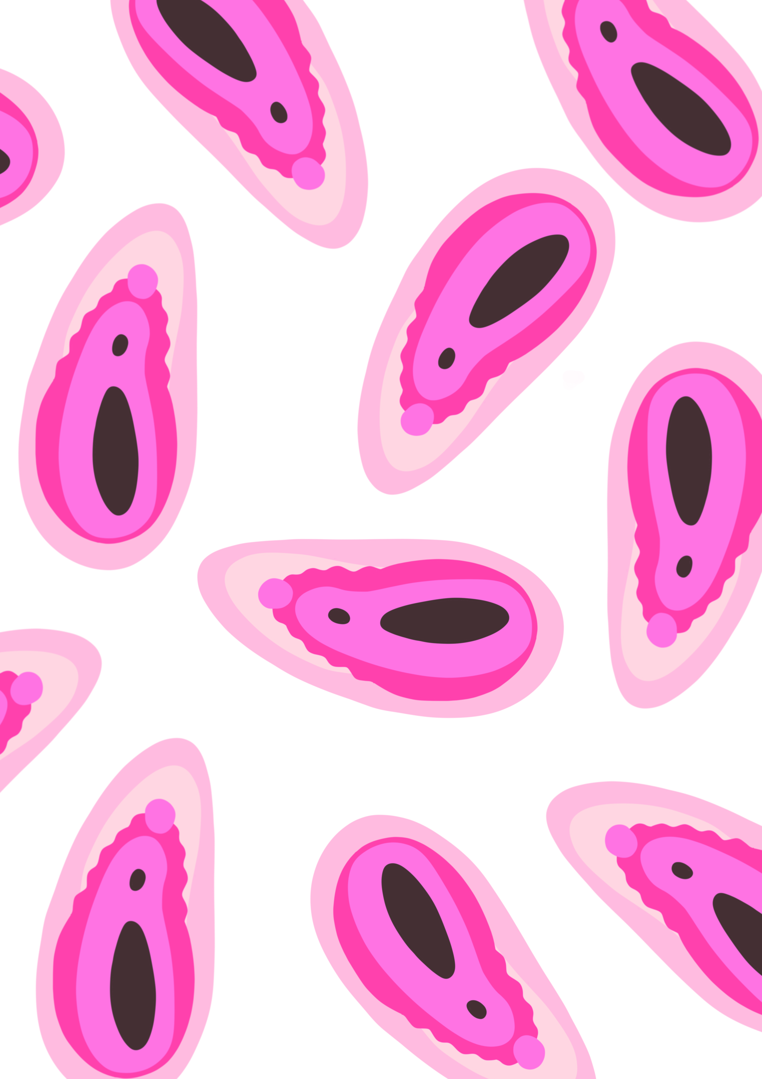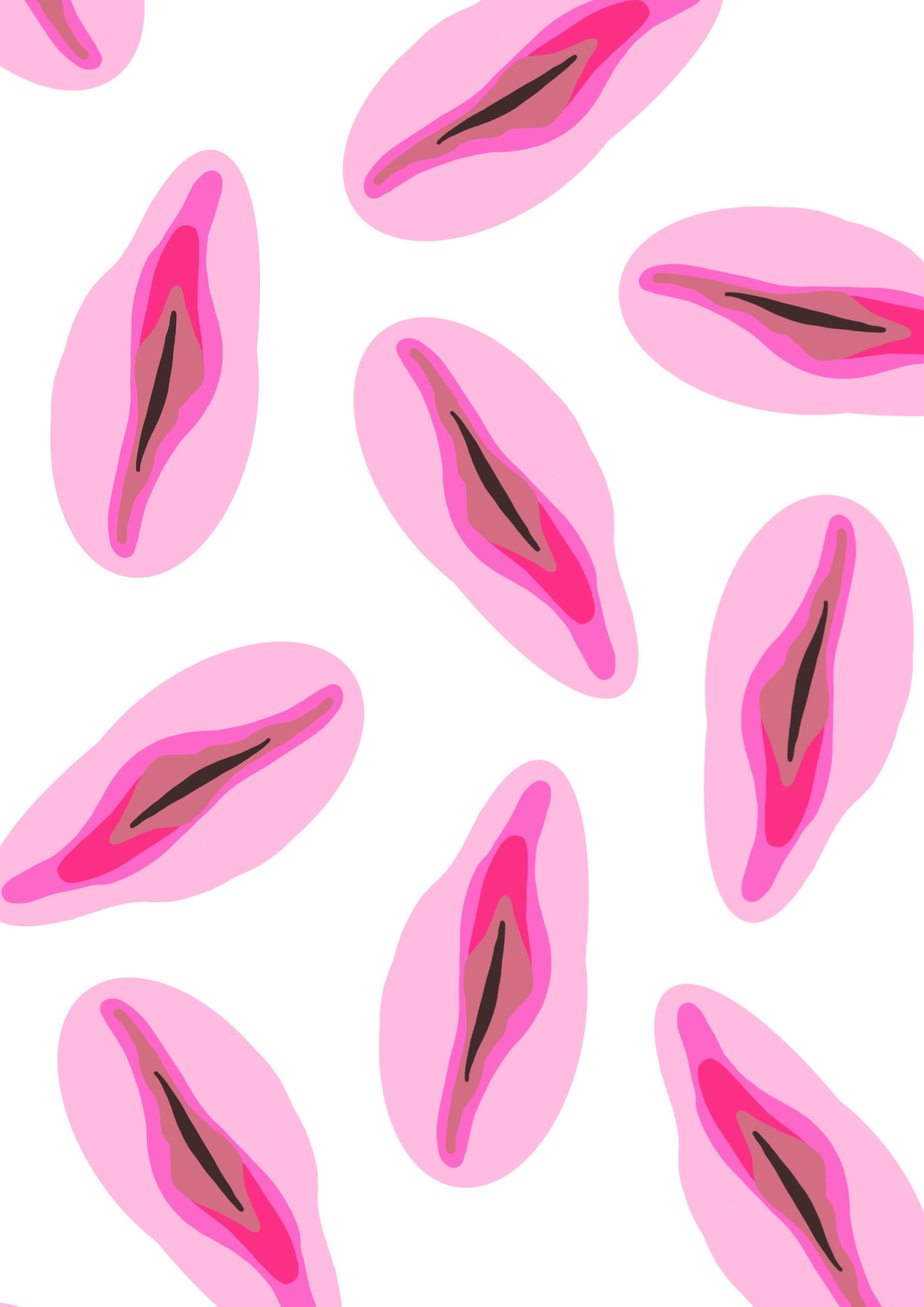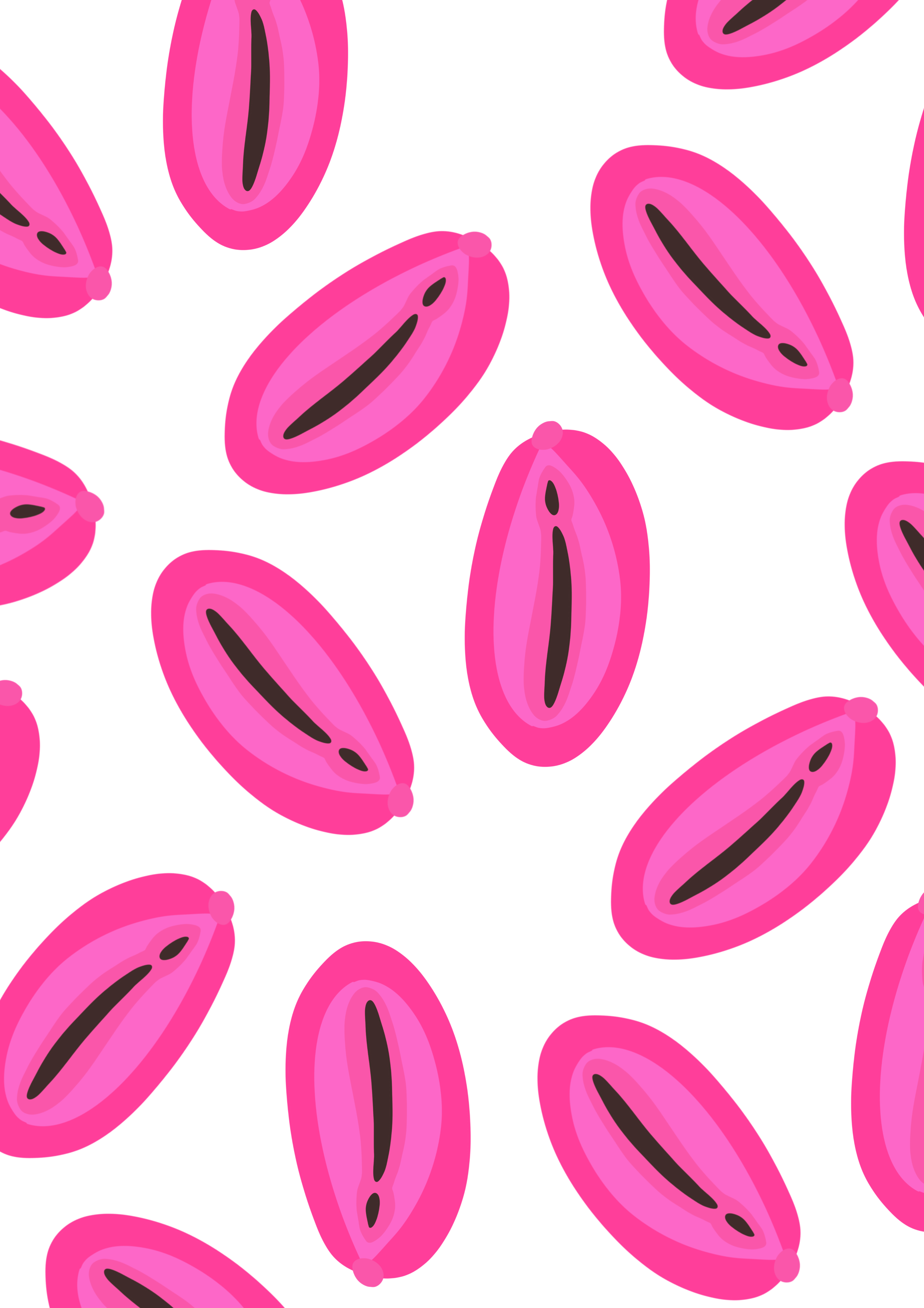 Running through the centre is a symmetrical, layered pattern — an intricate network of mirrored lines that resemble both anatomical pathways and symbolic forms. The shapes converge and open simultaneously, suggesting an entry point that reads as brain, heart and vulva. This central motif feels alive: rhythmic, pulsing, and continuous.